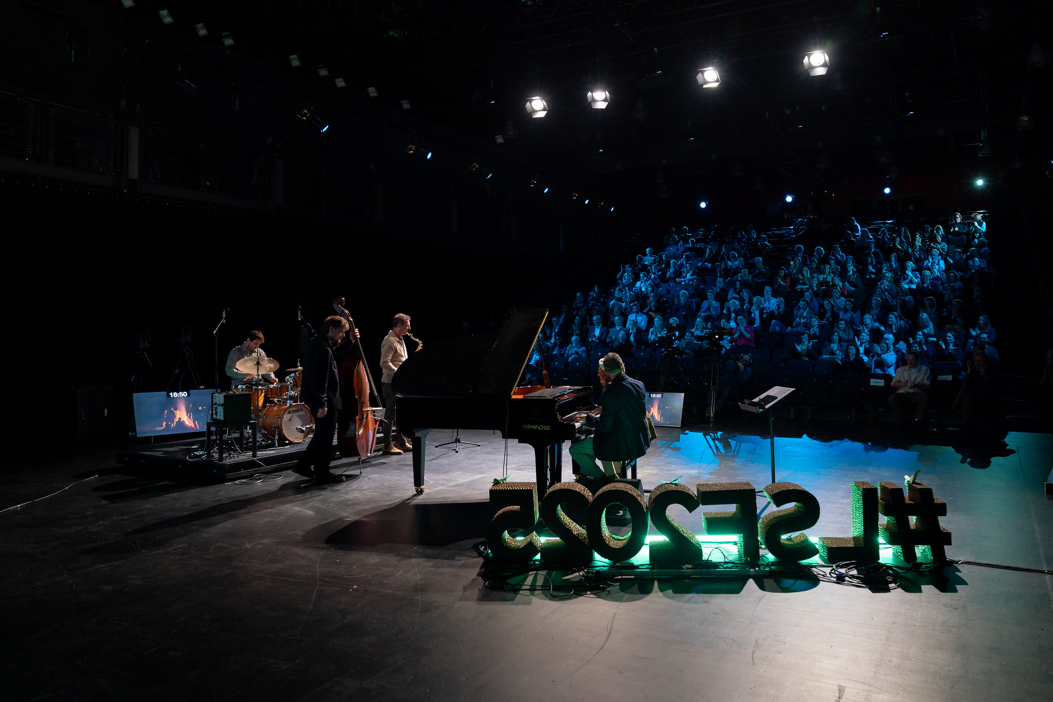 Des participants du Luxembourg Sustainability Forum sont invités à monter sur scène et à guider Alex Steele et son Quartet de Jazz.
